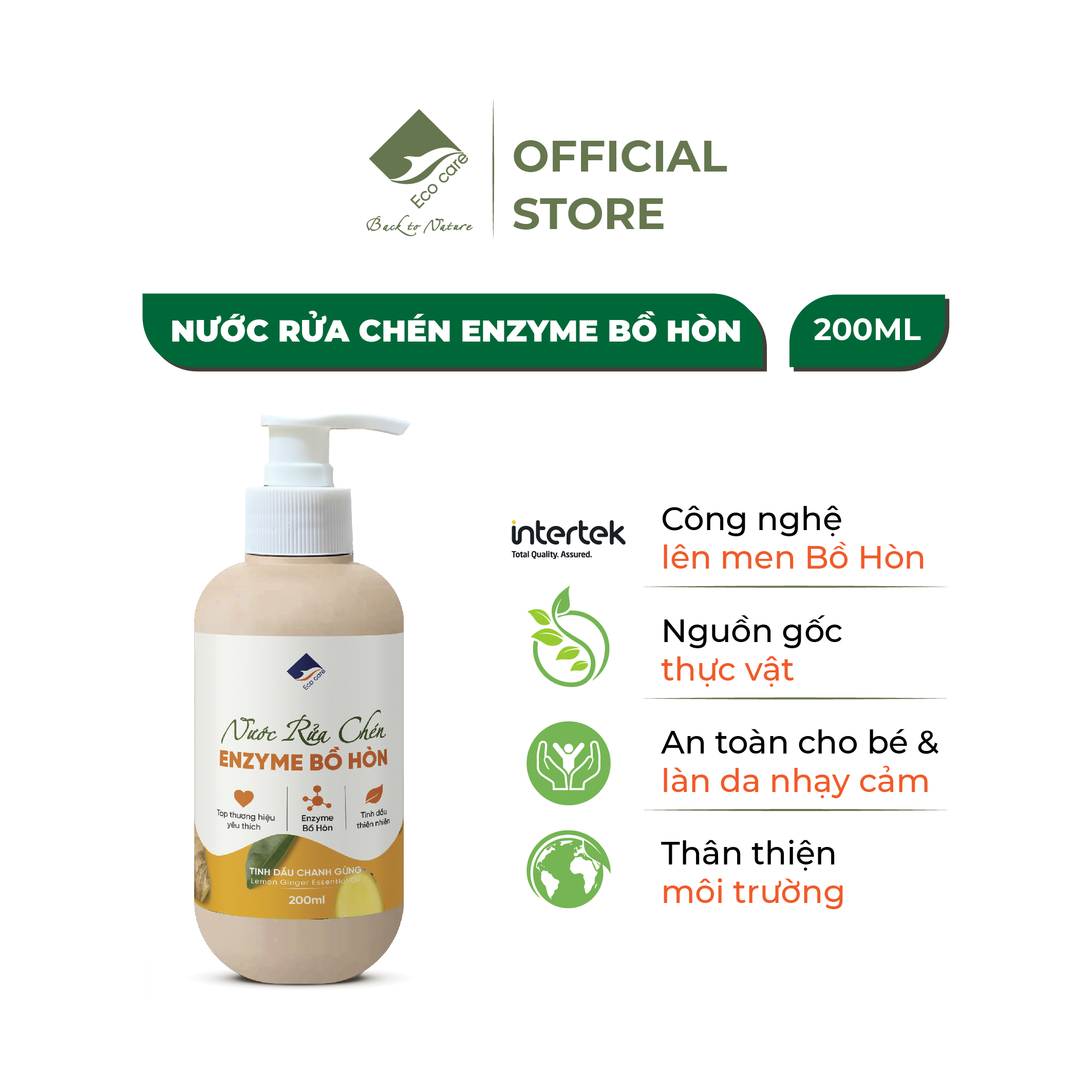 Nước Rửa Chén Hữu Cơ Bồ Hòn Tinh Dầu Chanh Gừng Ecocare