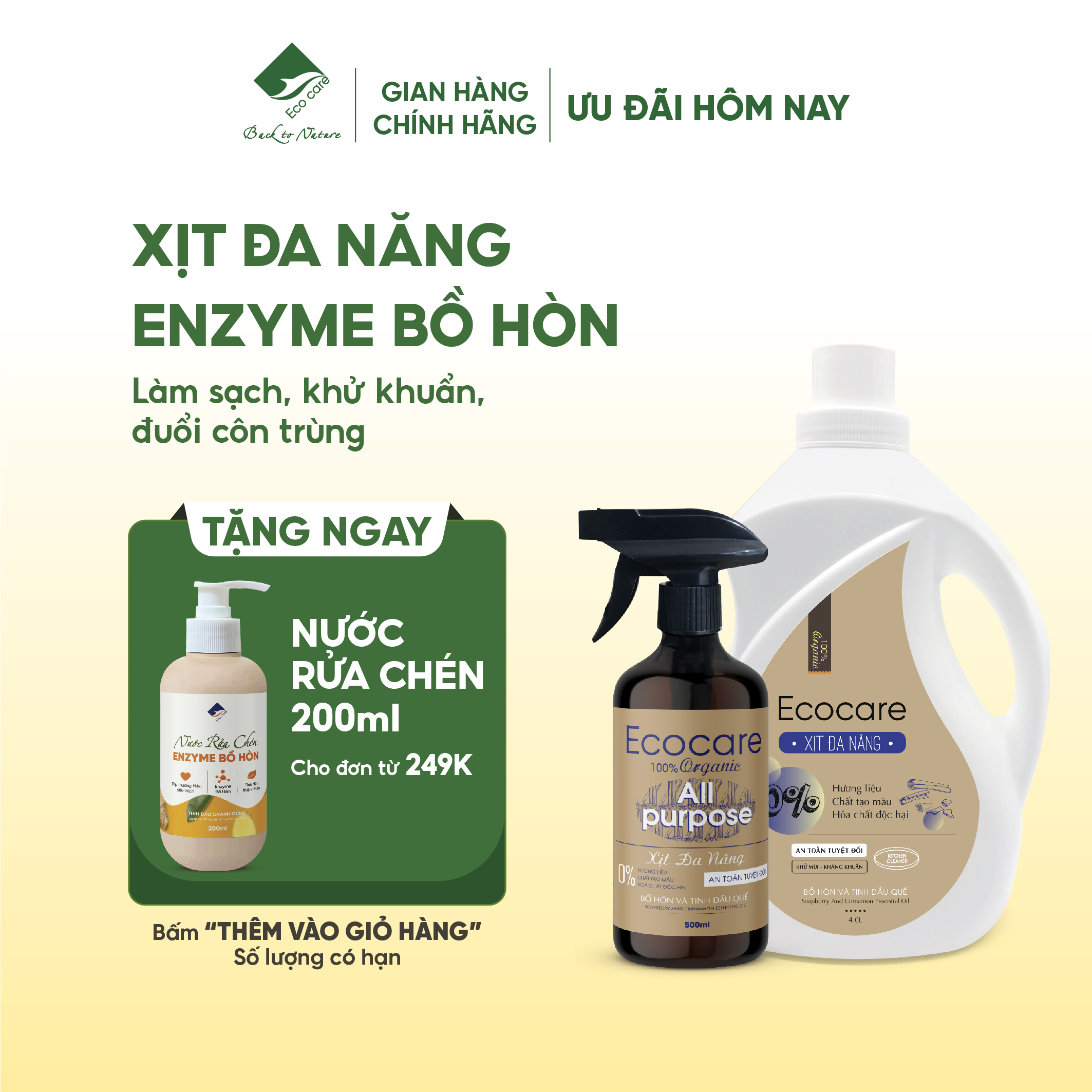 Xịt Tẩy Đa Năng Hữu Cơ Bồ Hòn Tinh Dầu Quế Ecocare. Xịt đa năng có thể đuổi côn trùng